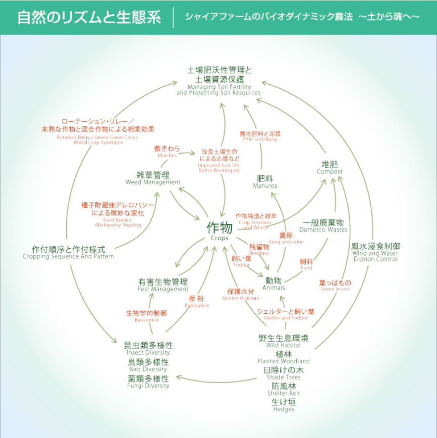 バイオダイナミック農法は、またの名をシュタイナー農法とも呼ばれ、化学肥料や農薬は一切使わずに、土壌本来の力とそこに生息する植物や生物、動物たちのもたらすさまざまな要素との間に起きる自然な相互依存にゆだねる農法です。